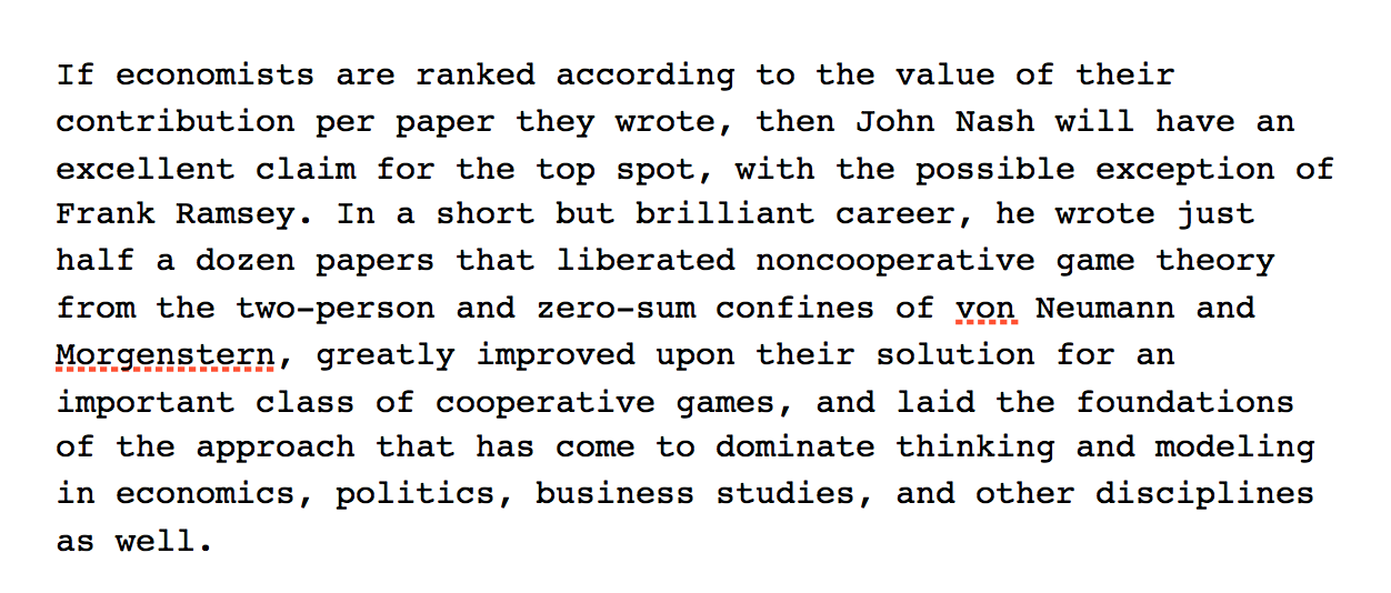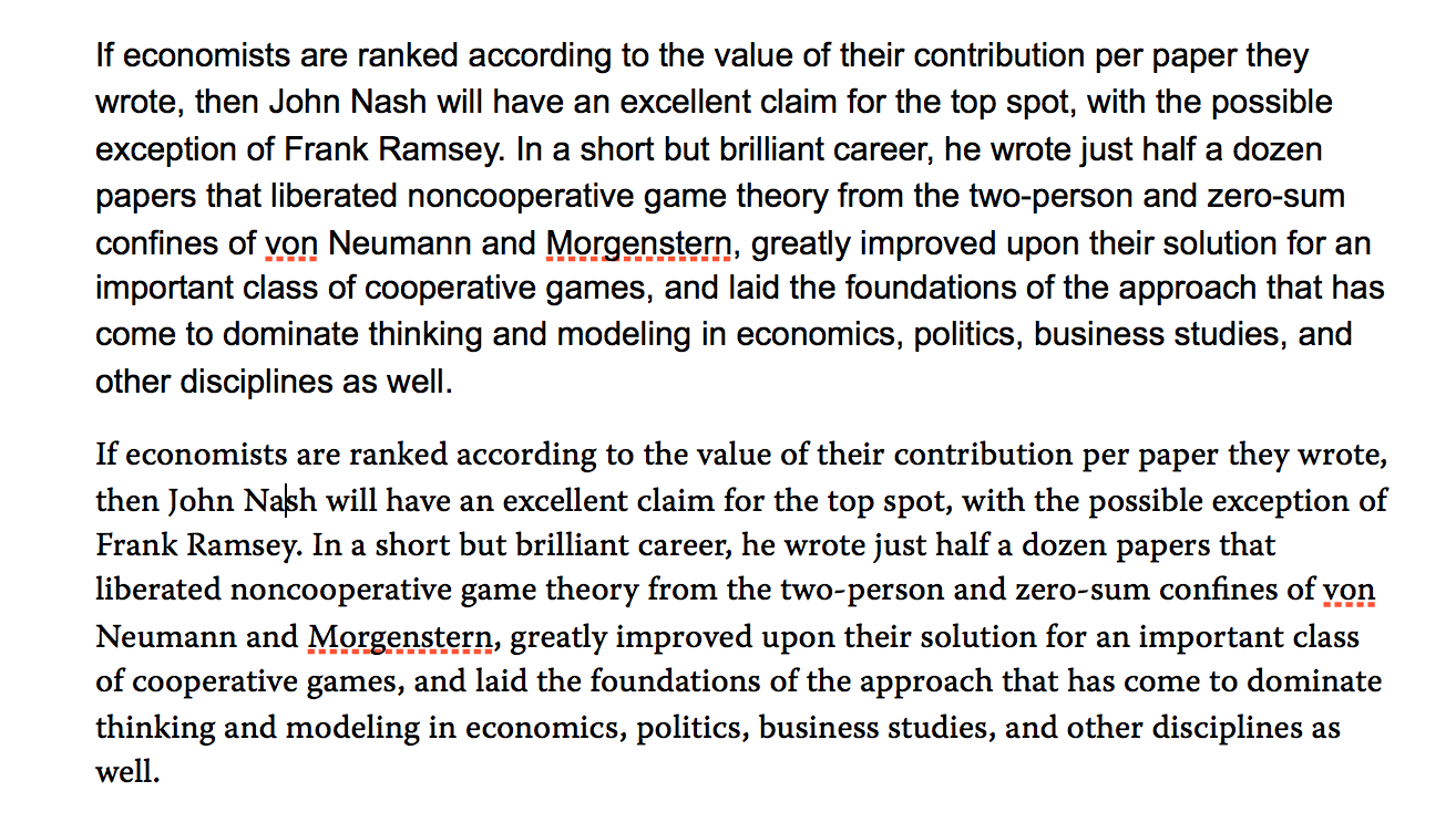 我看過很多國際學生寫英文報告的時候喜歡使用 Courier 或是類似的等寬字體。我能想到的選擇 Courier 作爲論文字型的原因主要是兩個:一種是工科生,與編程語言相處奮鬥數年,對 Courier 產生了深厚的感情,認爲這是世界上最美妙字體。第二種學生就相對猥瑣一些,相較其他字體,使用 Courier 會讓論文在行數和頁數上看起來多一些。不管是處於哪一種原因,除非你的論文中含有代碼,otherwise please stop doing this. Courier 是由打字機字體發展而來,也曾經是美國政府公文的標準字型。在今天,它已經遠離的時代的潮流。等寬字體的可讀性很差,即便是系統默認的 Times New Roman 或是 Arial 也遠勝過使用等寬字型。